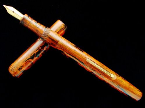 Hard rubber red-black mottled pens were the craze of the 1910 - 1920s. They brought a bit of color in the triste black hard rubber routine.